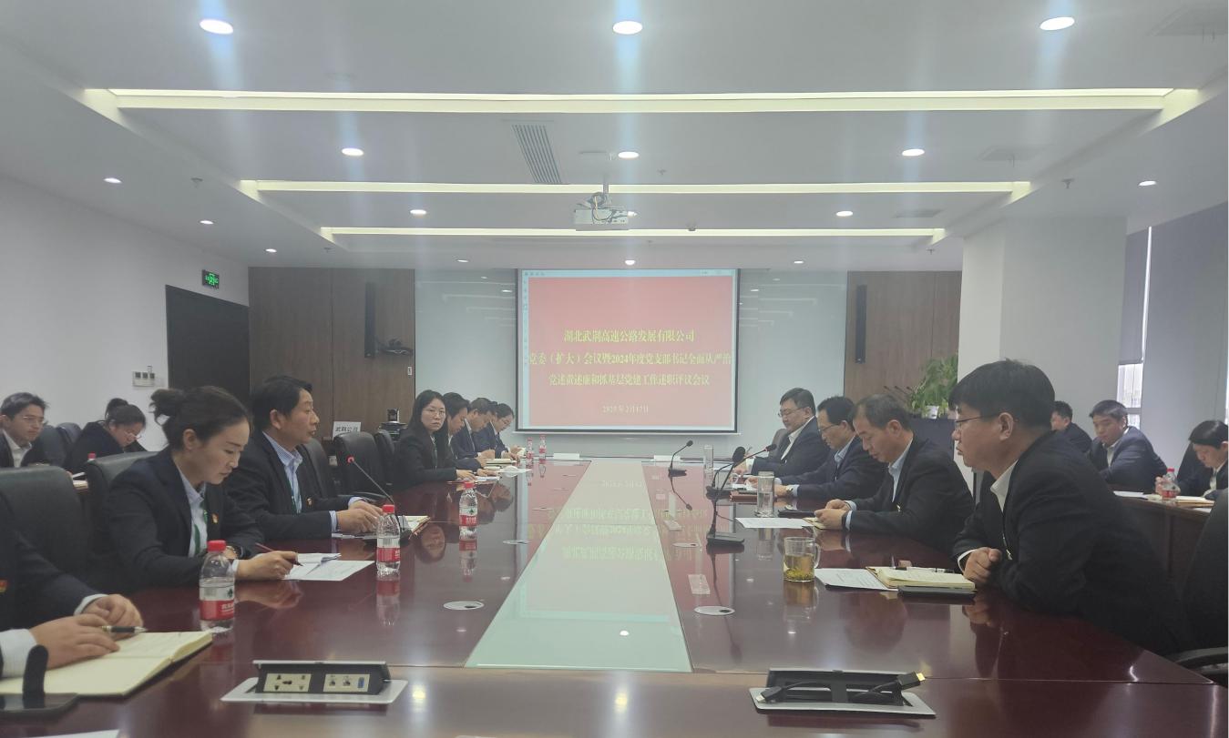 2月17日上午,湖北武荆公司召开党委(扩大)会议,听取党支部书记2024年度全面从严治党述责述廉和抓基层党建工作述职,并组织开展评议。公司党委书记、董事长尹璞主持会议并讲话,投资发展公司进行视频督导,公司领导班子、中层正副职、党支部书记和基层代表参加会议。