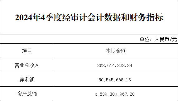 湖北武荆高速公路发展有限公司2024年4季度经审计会计数据和财务指标-k8凯发