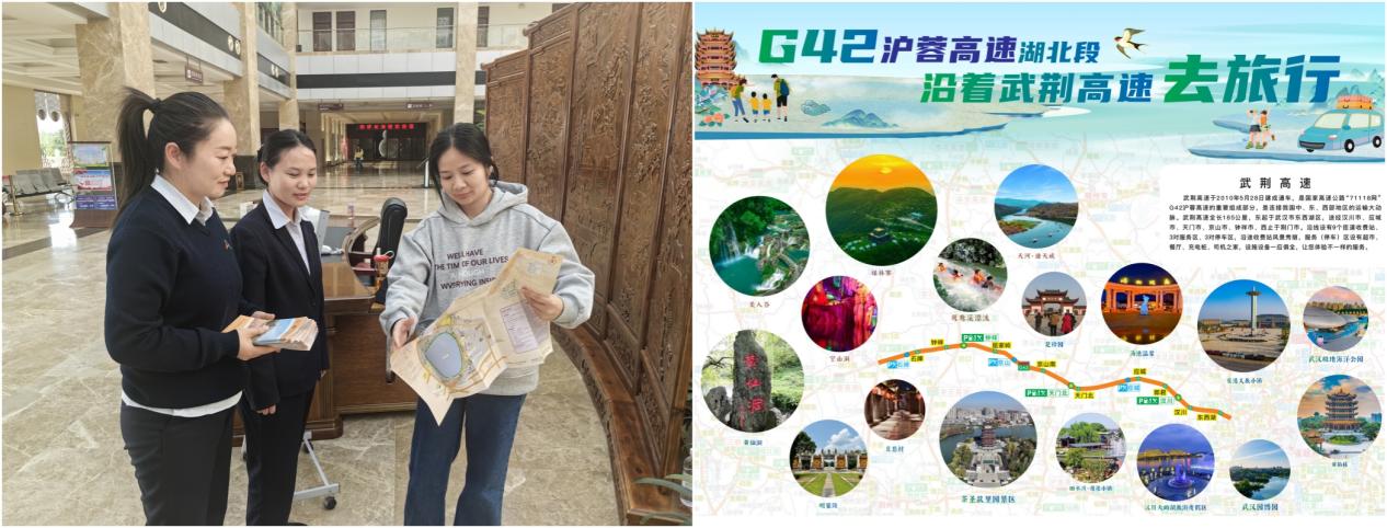 以“主题营销”为抓手,主动外拓市场,携手省外四川、湖南、河南兄弟单位及周边路段搭建跨省联合营销机制,开展“沿着武荆去旅行”互换城市主题营销活动,通过发放宣传手册、现场讲解引导、led显示屏滚动播放、自媒体转发等形式打造“线下 线上”立体宣传矩阵,显著提升沿线景区关注度与吸引力。截至5月8日,累计发放宣传手册3万余份,为推动跨区域文旅资源共享、客源互送、市场共建奠定坚实基础。