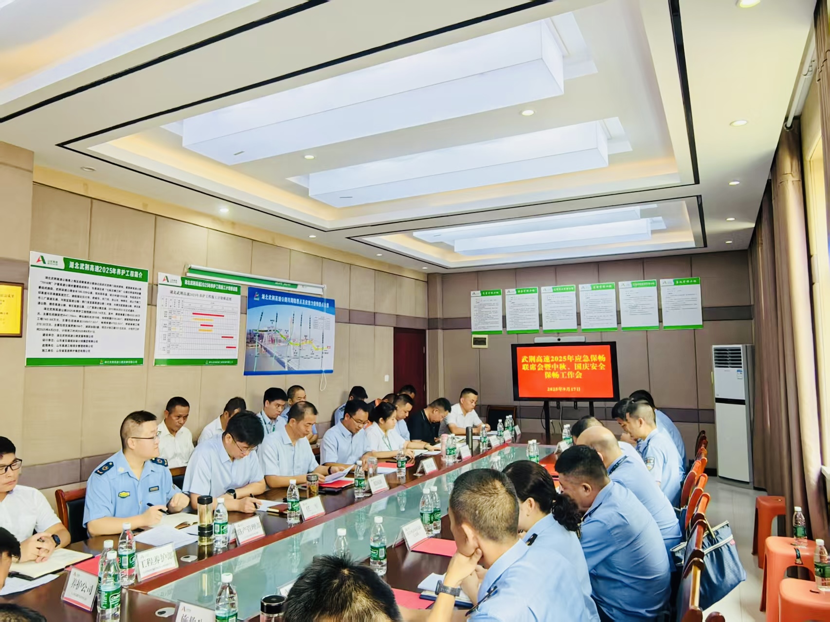 近日,湖北武荆公司组织召开2025年应急保畅联席会暨2025年中秋、国庆安全保畅工作会议。武荆公司总经理张国新出席会议并讲话,辖区高警、路政、养护、通维、救援等单位负责人及公司相关部门人员参加会议。
