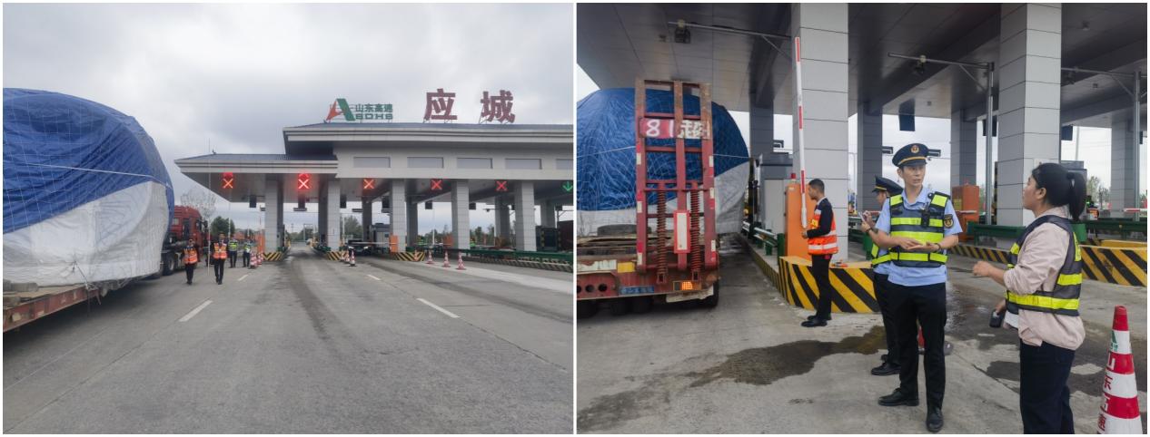 经与路政部门联合勘查、安全评估后,一致决定采取特别通行方案:临时放倒出口光栅,引导车辆经出口称重系统完成检测,再由出口车道逆向安全驶入高速。整个流程在收费站与路政部门的共同监护下规范、有序完成,三辆大件车均顺利入站,未发生安全突发事件。