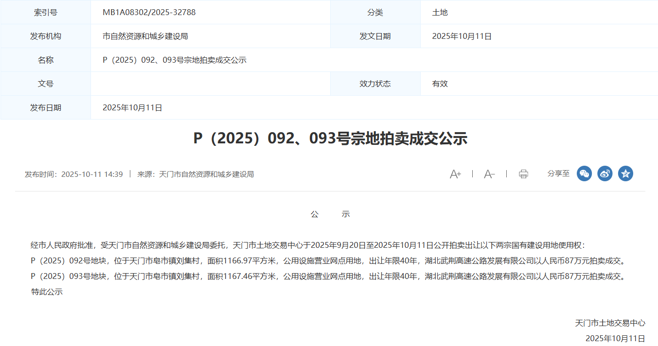 近年来,武荆公司积极响应股份公司资产盘活创效工作要求,深入探索交能融合绿色低碳发展新路径,前期与某能源央企合作推动天门北服务区lng加气站项目,但受制于服务区划拨公路用地性质,项目推进受阻。为尽快实现投营,武荆公司创新思路、科学部署,迅速成立工作专班,公司主要领导带队主动对接属地政府,先后与天门市人民政府、天门市自然资源与城乡建设局等单位开展多轮磋商谈判,顺利完成土地收储、评估、设置建设用地规划条件、挂网等一系列合法合规程序。经天门市人民政府批准,10月11日,该地块在天门市自然资源和城乡建设局土地交易中心现场拍卖。经过多轮激烈竞价,武荆公司顺利竞得项目用地,成为湖北省首个服务区原划拨公路用地转为出让商服用地的高速公路运营单位,也为高速服务区经营性用地存量土地盘活提供了可复制推广的“武荆方案”。