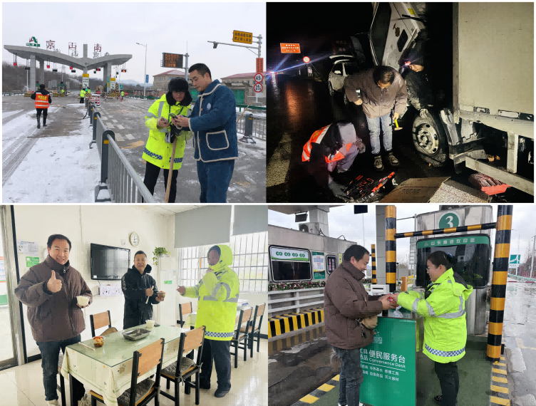 突击队将服务融于行动,让“山高・行”服务直抵人心。收费窗口设立便民服务点,备好热水、热食、暖宝宝、应急药品等物资;党员志愿者穿梭于滞留车辆间,安抚司乘情绪、讲解路况信息、协助排查车辆故障。面对行动不便的老人和儿童,队员们主动帮扶、协调餐饮住宿,用贴心的服务驱散严寒,让司乘在风雪中感受党组织的关怀。